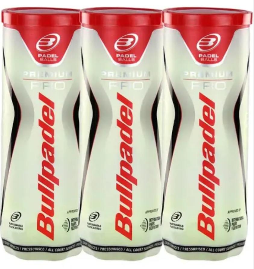 Tre tubi di palline Bullpadel Premium Pro per le tue partite a Padel. Sono studiate per garantire ottime performance e lunga durata.