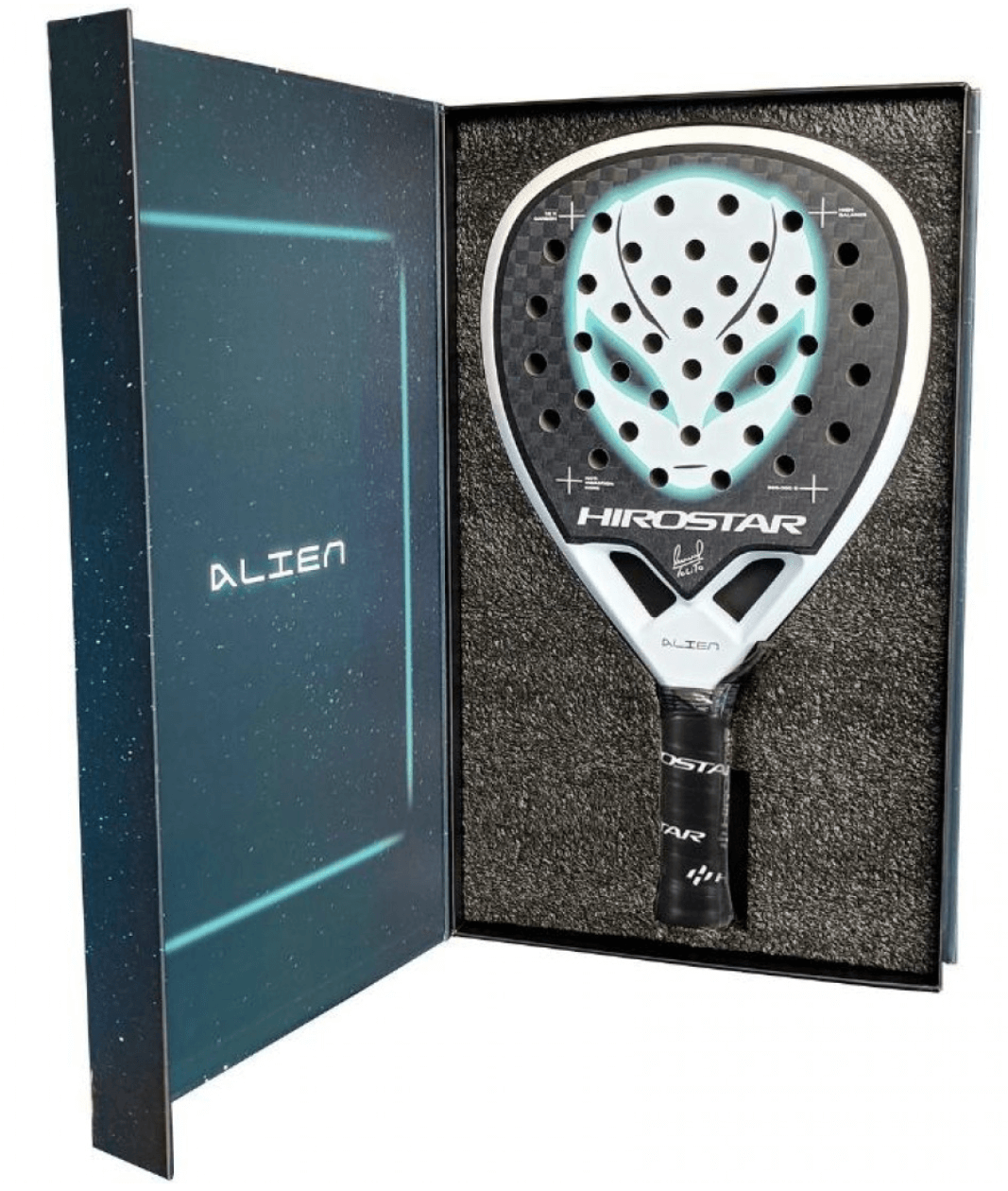 La Hirostar Alien 2025 è una racchetta da padel a forma di diamante, pensata per giocatori avanzati e agonisti, con un telaio e superficie in carbonio 12K, nucleo in EVA BLACK a durezza media, e una finitura sabbiata opaca per migliorare gli effetti. Le sue caratteristiche includono un peso di circa 365 grammi, bilanciamento medio-alto, ponte aerodinamico per ridurre le vibrazioni e il sistema Smart Holes per maggiore maneggevolezza e controllo.
